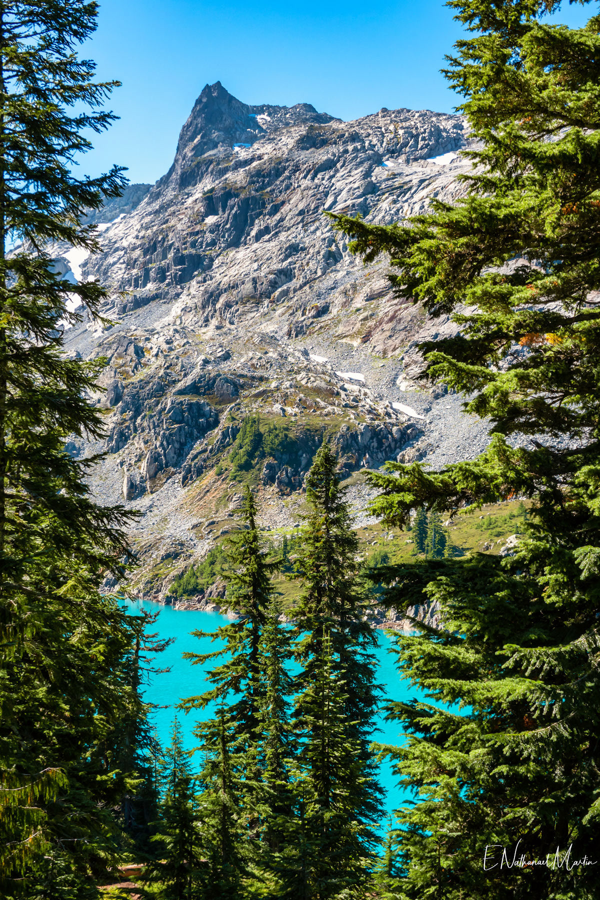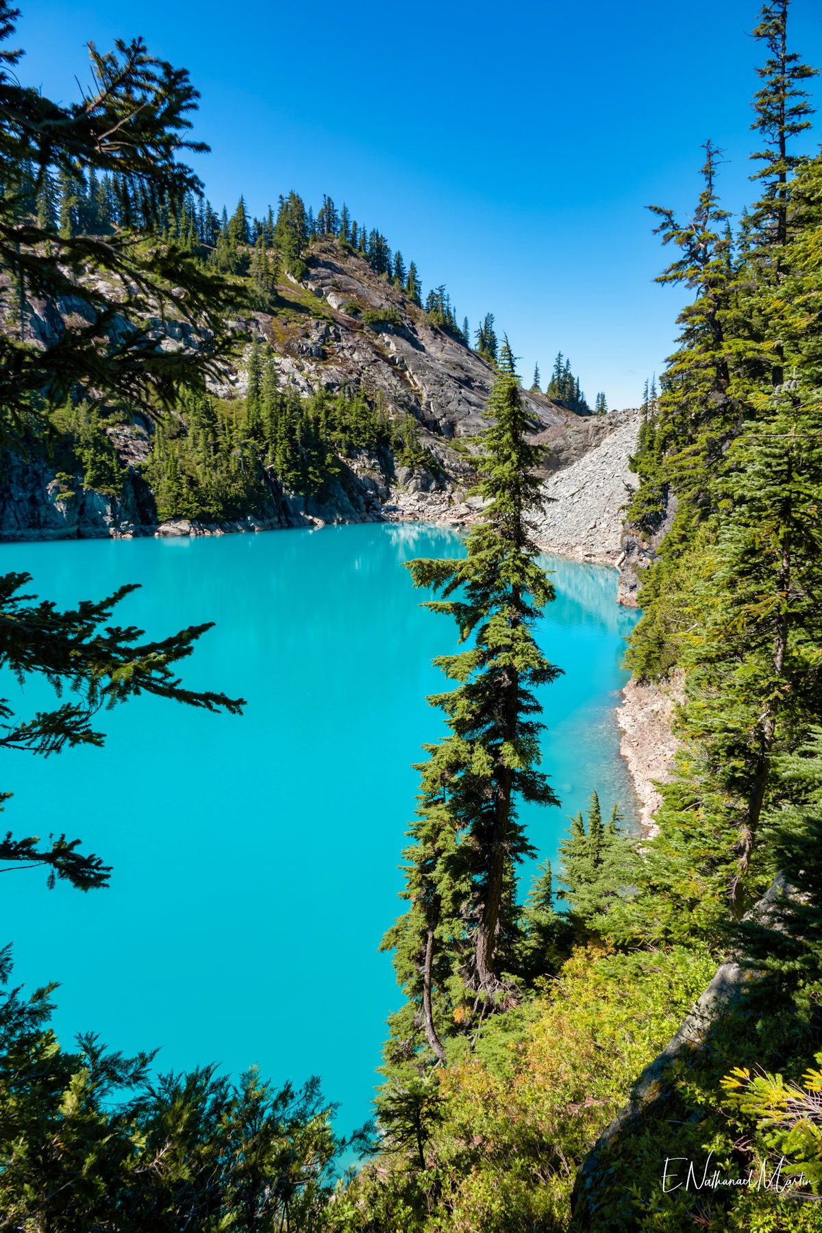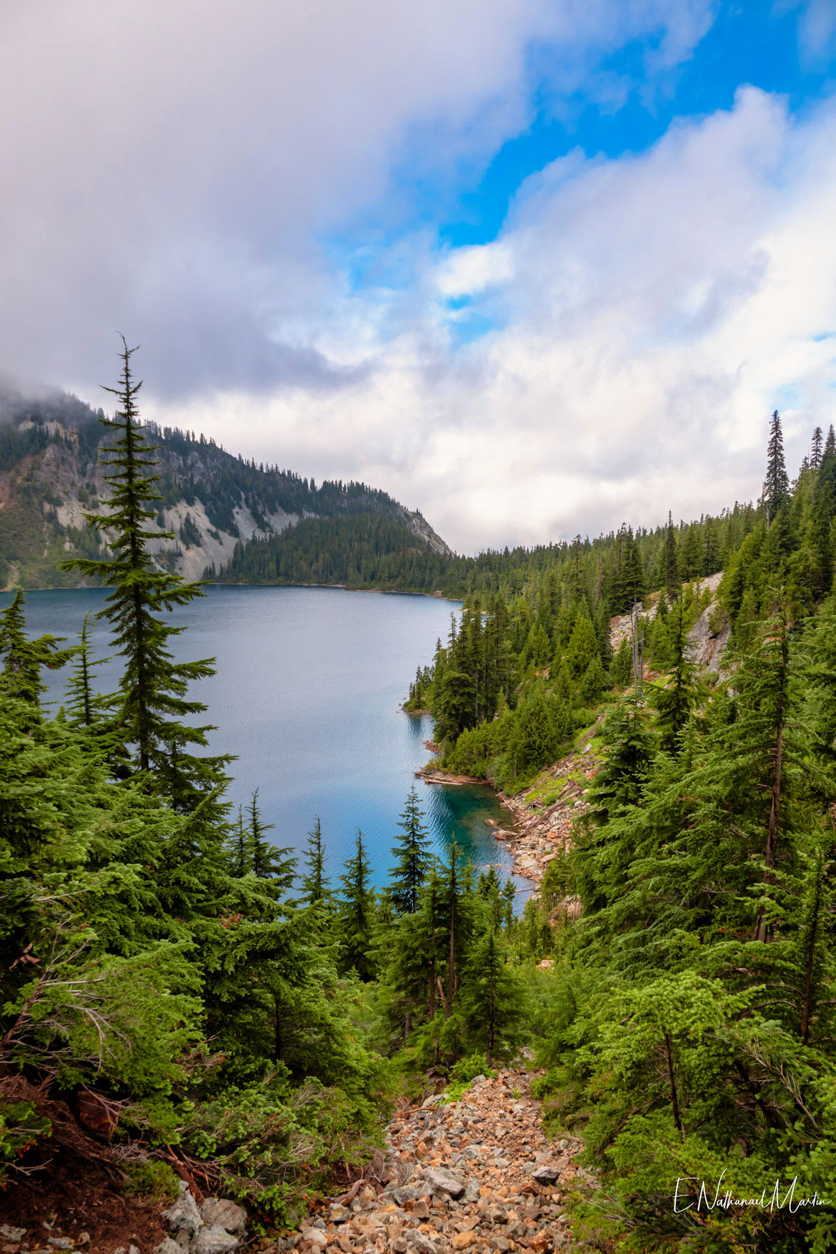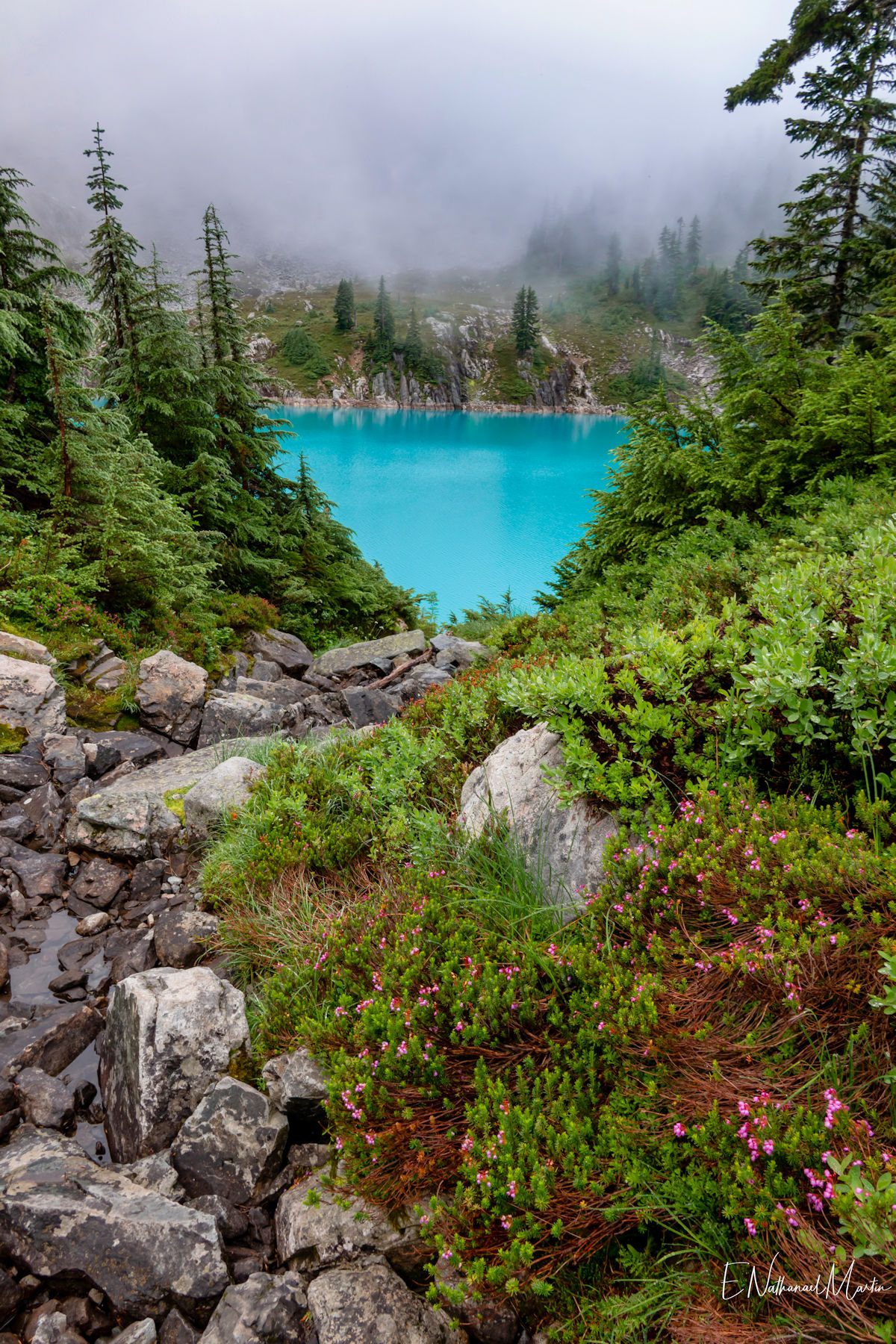 A couple years ago, I found out about this absolutely incredible corner of Washington state called the Alpine Lakes Wilderness...and in 2020 I hiked here for the first time. When I first saw this particular hike, which I'm not naming due to serious overcrowding concerns, I didn't think I'd ever be able to do it. At the time I was only day hiking, and the climb to get here is 20 miles with 4,500ft elevation change...plus another three miles and 1,000 additional feet if you want to get everything. When I got setup for backpacking this year, I knew I had to come here. I had aimed to come here in late July or early August but Washington state weather did not cooperate -- I was prevented by rain three weekends and smoke one weekend. Finally, the last weekend in August turned out absolutely perfect. It rained Thursday night, and Friday was clearing but still cloudy so there weren't as many other hikers. I captured some incredibly misty views all the way up and had my pick of the best campsites right on the incredible emerald colored lake that was my goal. I've seen water that color in a few places, mainly Canada...but never quite like this in the Pacific Northwest. It literally didn't even feel real. The colors you see below are true and completely real. The rest of the weekend was crystal clear with absolutely perfect views. It was a tough climb, and by Saturday night quite crowded but so, so worth every step.