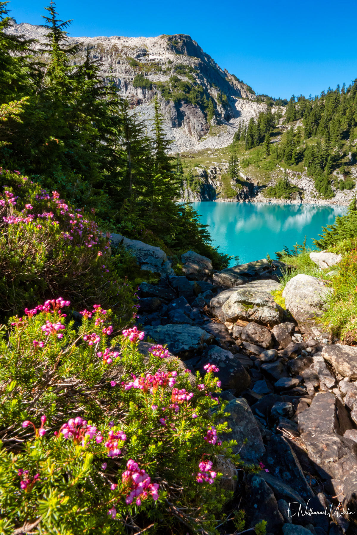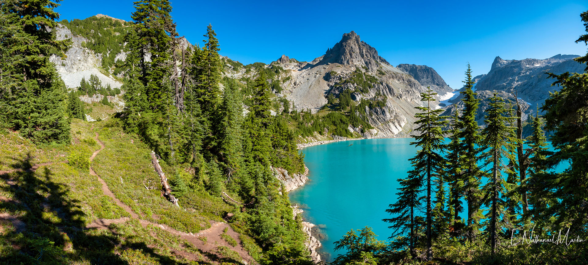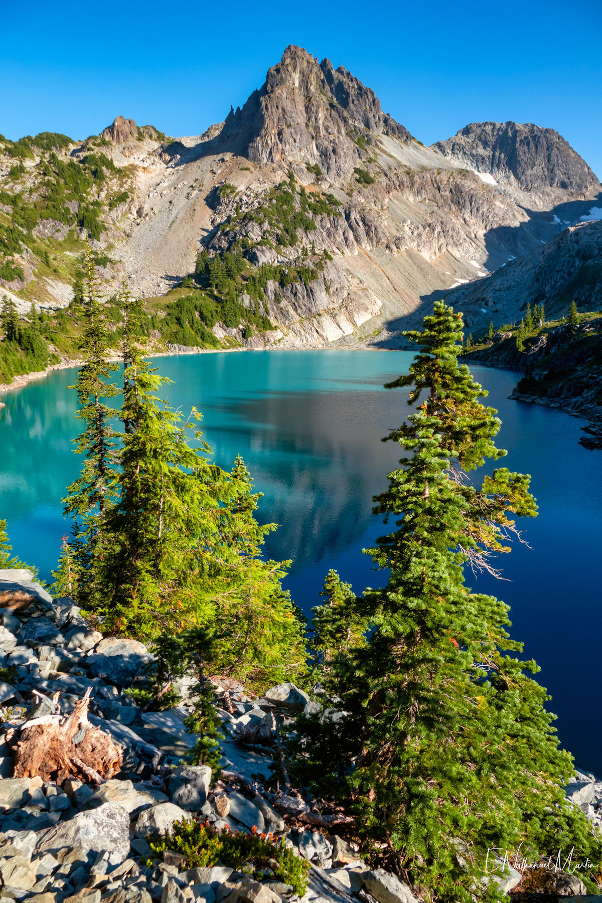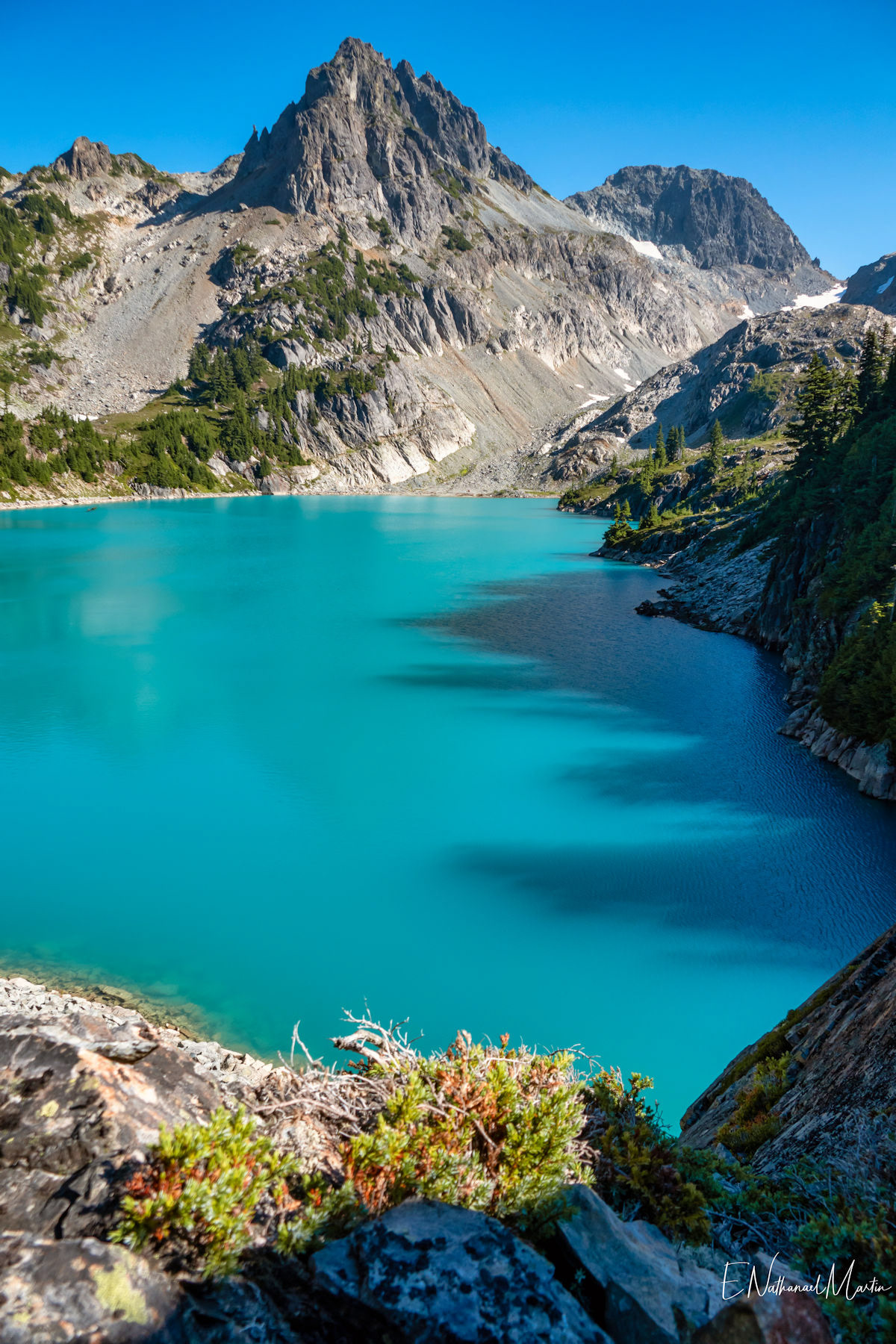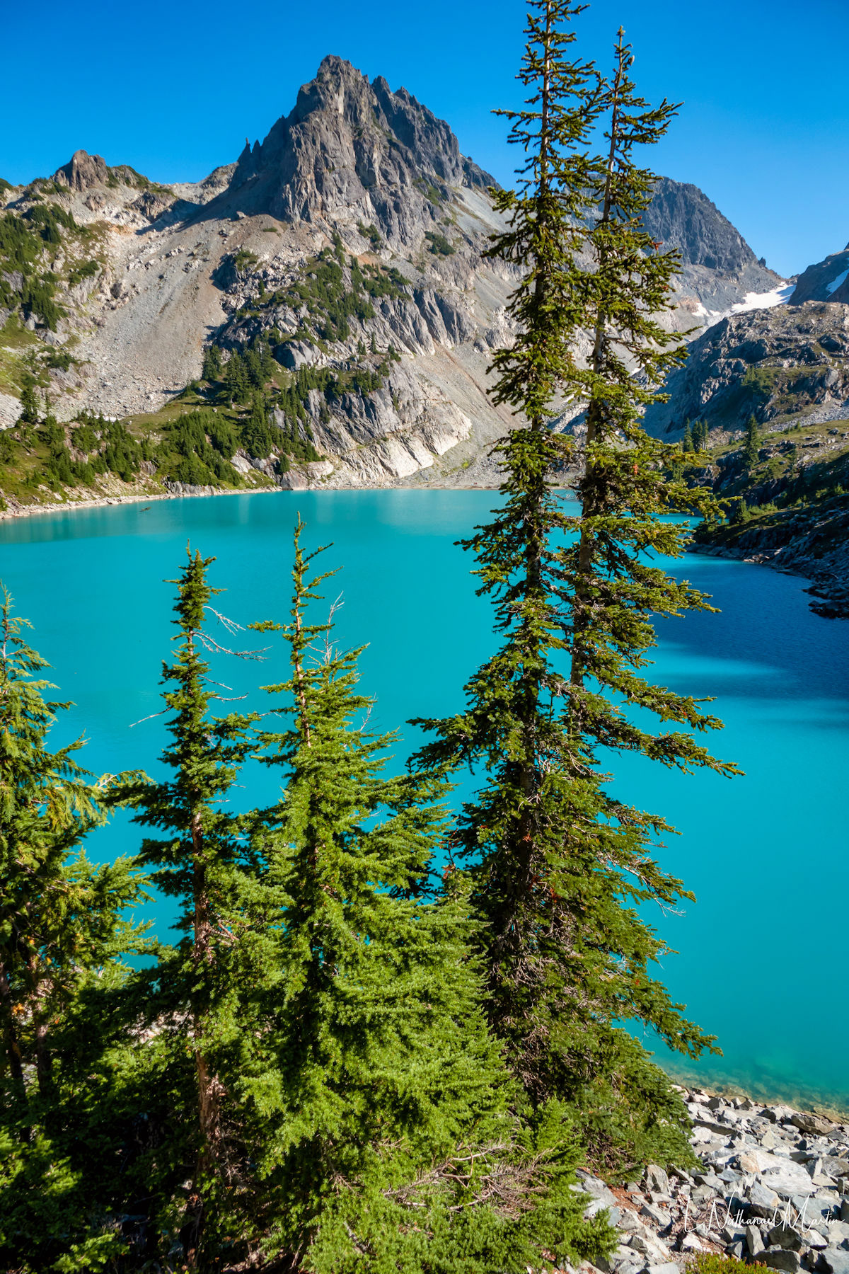A couple years ago, I found out about this absolutely incredible corner of Washington state called the Alpine Lakes Wilderness...and in 2020 I hiked here for the first time. When I first saw this particular hike, which I'm not naming due to serious overcrowding concerns, I didn't think I'd ever be able to do it. At the time I was only day hiking, and the climb to get here is 20 miles with 4,500ft elevation change...plus another three miles and 1,000 additional feet if you want to get everything. When I got setup for backpacking this year, I knew I had to come here. I had aimed to come here in late July or early August but Washington state weather did not cooperate -- I was prevented by rain three weekends and smoke one weekend. Finally, the last weekend in August turned out absolutely perfect. It rained Thursday night, and Friday was clearing but still cloudy so there weren't as many other hikers. I captured some incredibly misty views all the way up and had my pick of the best campsites right on the incredible emerald colored lake that was my goal. I've seen water that color in a few places, mainly Canada...but never quite like this in the Pacific Northwest. It literally didn't even feel real. The colors you see below are true and completely real. The rest of the weekend was crystal clear with absolutely perfect views. It was a tough climb, and by Saturday night quite crowded but so, so worth every step.