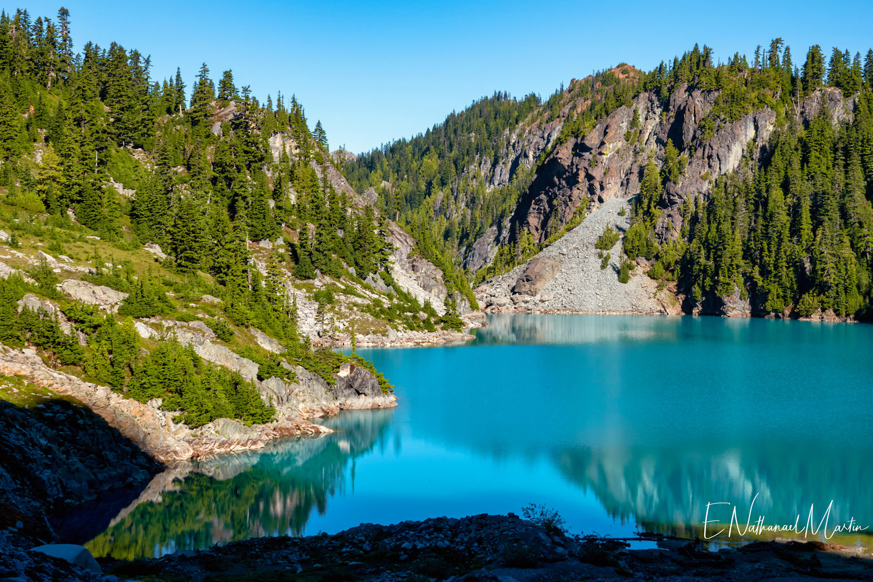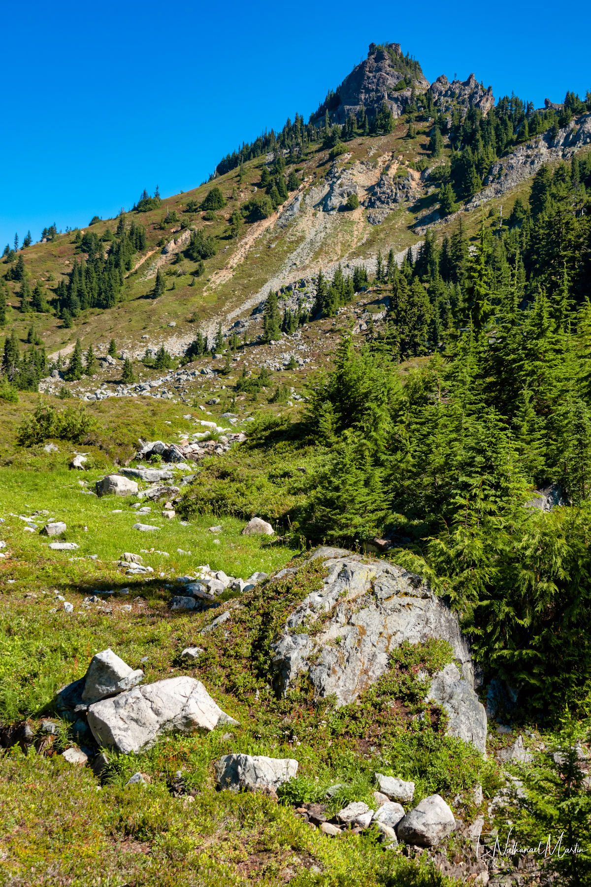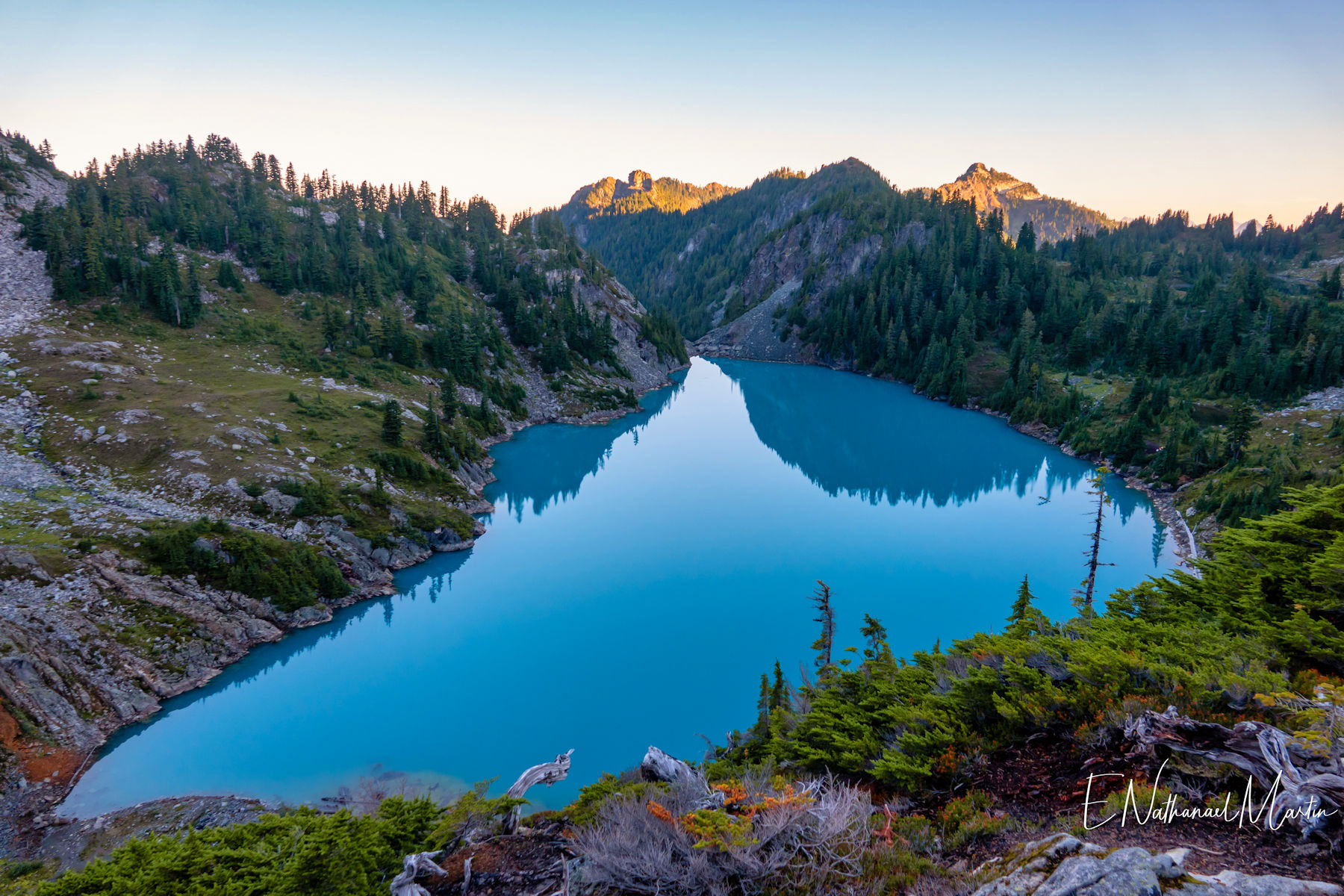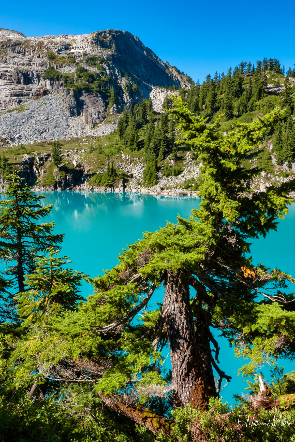 A couple years ago, I found out about this absolutely incredible corner of Washington state called the Alpine Lakes Wilderness...and in 2020 I hiked here for the first time. When I first saw this particular hike, which I'm not naming due to serious overcrowding concerns, I didn't think I'd ever be able to do it. At the time I was only day hiking, and the climb to get here is 20 miles with 4,500ft elevation change...plus another three miles and 1,000 additional feet if you want to get everything. When I got setup for backpacking this year, I knew I had to come here. I had aimed to come here in late July or early August but Washington state weather did not cooperate -- I was prevented by rain three weekends and smoke one weekend. Finally, the last weekend in August turned out absolutely perfect. It rained Thursday night, and Friday was clearing but still cloudy so there weren't as many other hikers. I captured some incredibly misty views all the way up and had my pick of the best campsites right on the incredible emerald colored lake that was my goal. I've seen water that color in a few places, mainly Canada...but never quite like this in the Pacific Northwest. It literally didn't even feel real. The colors you see below are true and completely real. The rest of the weekend was crystal clear with absolutely perfect views. It was a tough climb, and by Saturday night quite crowded but so, so worth every step.