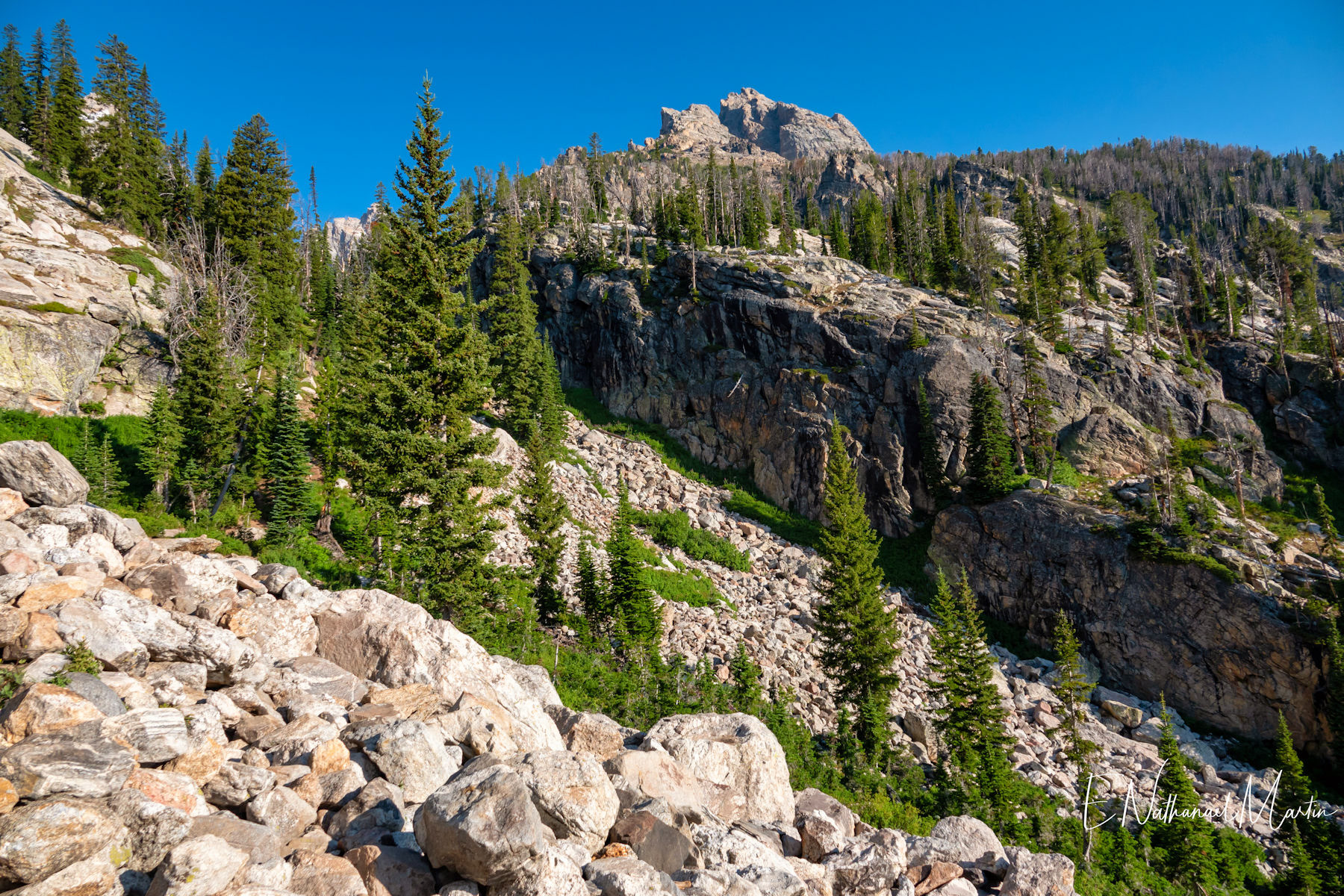 In mid July 2021, I had a road trip planned to go backpacking in eastern Oregon and Wyoming. I was afraid I'd have to cancel the trip due to the horrific fires in southern Oregon and northern California which had been covering Wyoming with smoke for days. However, a high pressure system moved up close to Wyoming just as I was due to leave, pushing the smoke out of the area. It was forecast to remain in place all week so I risked the 1,800 mile round trip drive. The smoke forecast still looked iffy for eastern Oregon, so I decided to focus just on Wyoming. My first day was a relatively short but tough hike to Delta, Suprise, and Ampitheater Lakes in Teton National Park. It clocked in at only 11.5 miles total, but with 4,000ft of elevation gain including a crazy scramble climbing 800ft in half a mile. All three lakes were beautiful, but Delta Lake takes the breath away. Absolutely stunning, easily making the list of my top favorite lakes in the world.