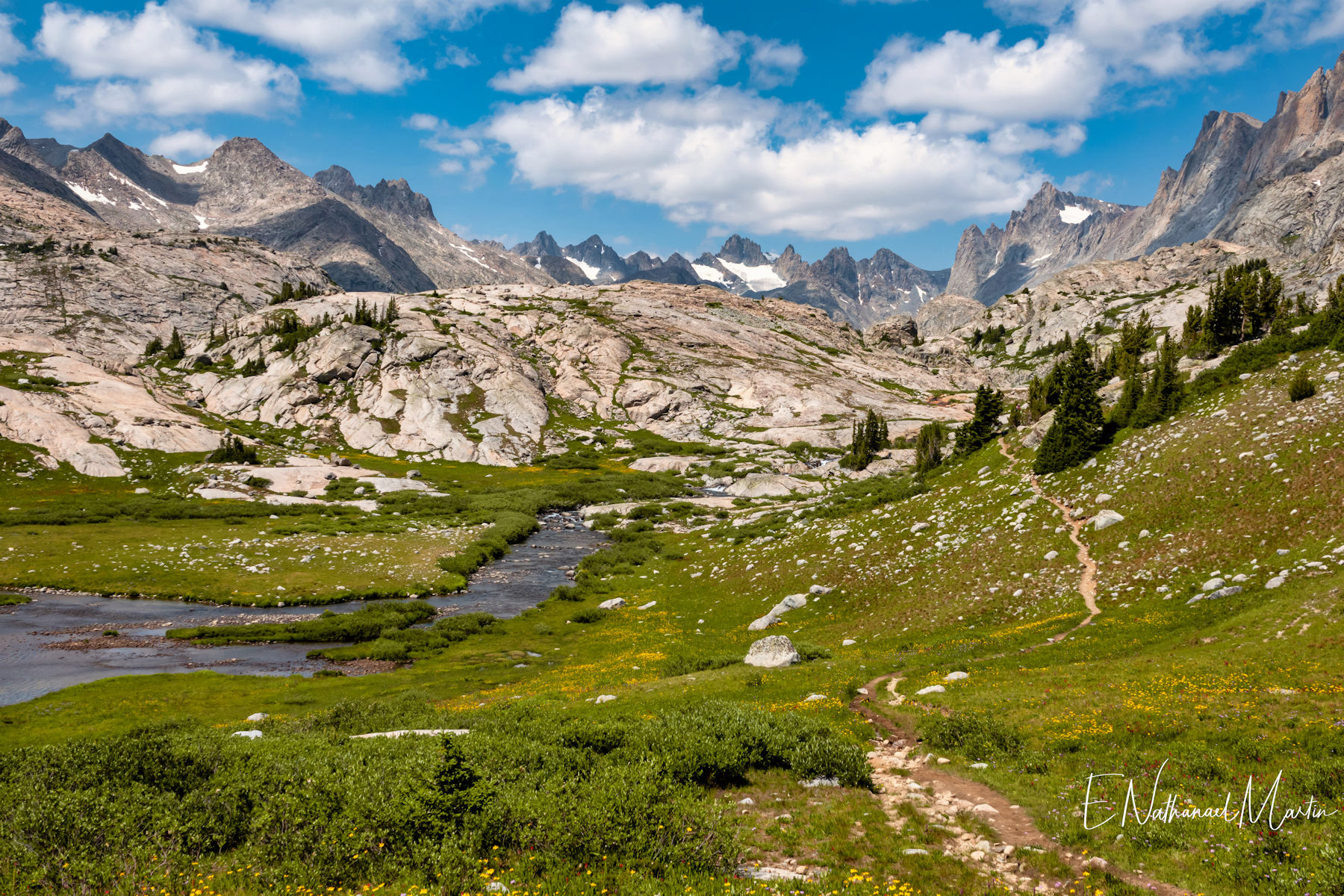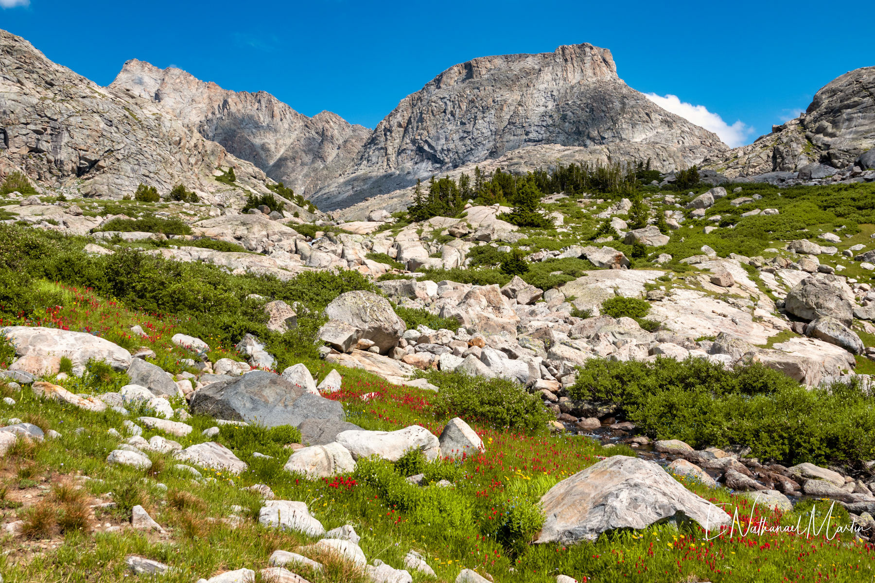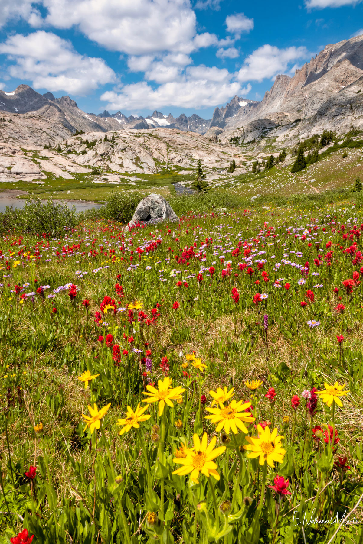 After backpacking Cirque of the Towers Loop in Wyoming's incredible Wind River range, I spent a night in town to freshen up a bit, and set out on my second backpacking hike for that week. By the time I started this hike I'd already logged nearly 40 miles with 8,000ft of elevation change so I was getting a little worn out. It took me about 9 hours to do 11 miles, but I made it and camped at the obscenely beautiful Island Lake for two nights. I was fortunate to secure an incredible camping spot with just about the best possible view of the lake right from my tent door. The next day I hiked around 13 miles (without my pack) exploring further past the lake into Titcomb and Indian Basins. The beauty here was truly indescribable. On the third day, while I was eager to get to a shower I was a bit reluctant to leave the incredible peace and sheer splendor of these surroundings. By the time I got back to my car I had logged a total of 77 miles in six days...a record for me.