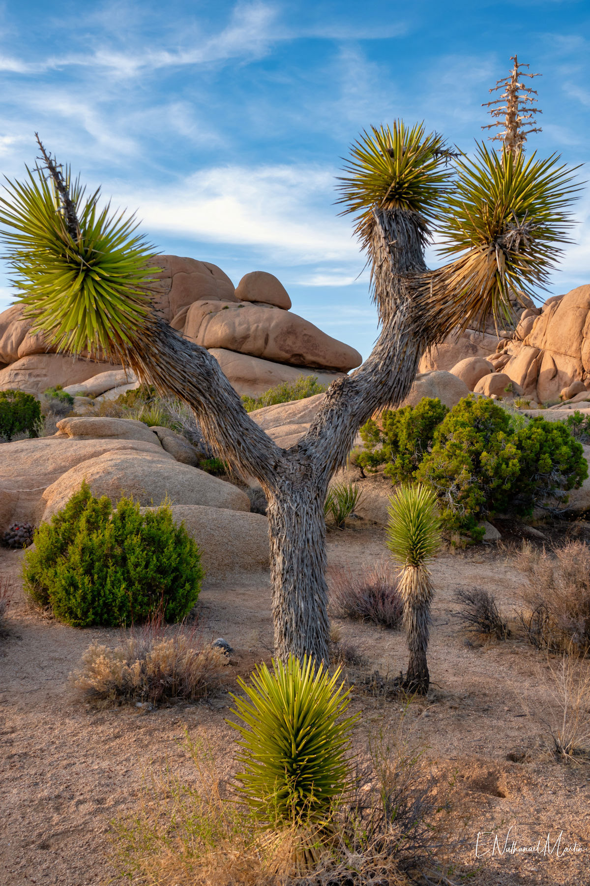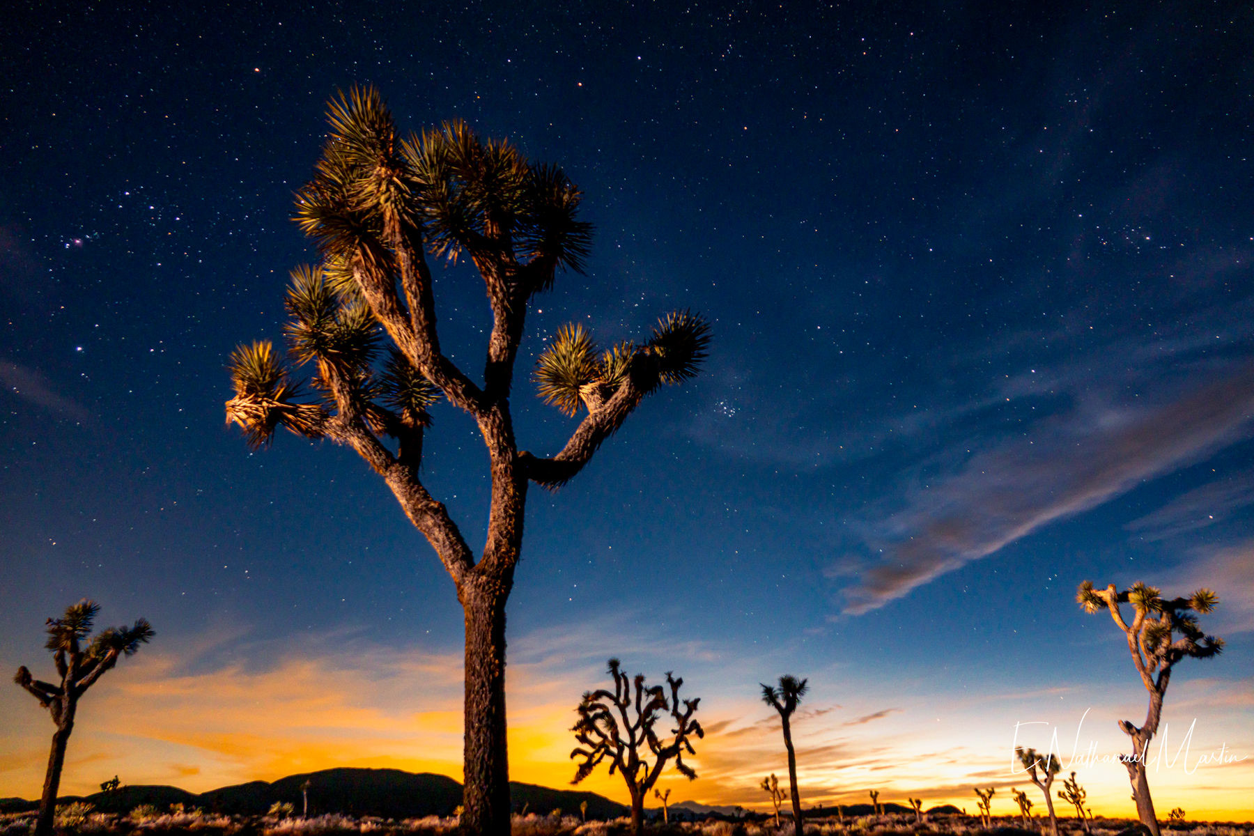I love the American Southwest, and try to take at least one short trip each year to one of the countless incredible areas found there. One of my favorites, and the most unique is Joshua Tree National Park. I visited here a few years ago and has been on my list to return and reshoot with my newer photography skills. This weekend turned out to be nearly perfect weather, with a mix of sun and clouds, making for incredible light. I only rarely dabble in night sky photography, but decided to give it a shot here since Joshua Tree is known for incredible night skies. I wasn't able to capture the milky way due to too many clouds very early morning when it was out, but I did capture probably my best night sky shot to date about an hour after sunset. A passing car lit up the Joshua Trees in my foreground perfectly, with residual sunset color and Orion.