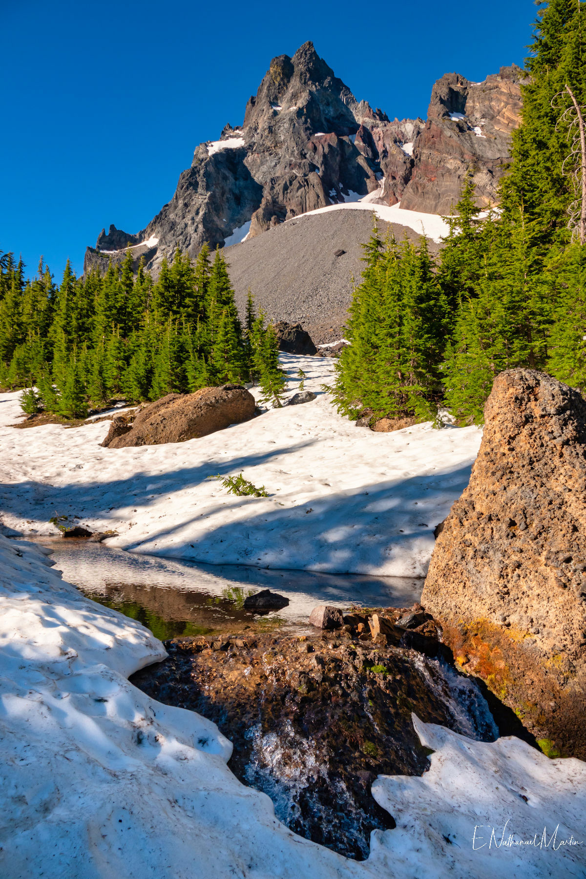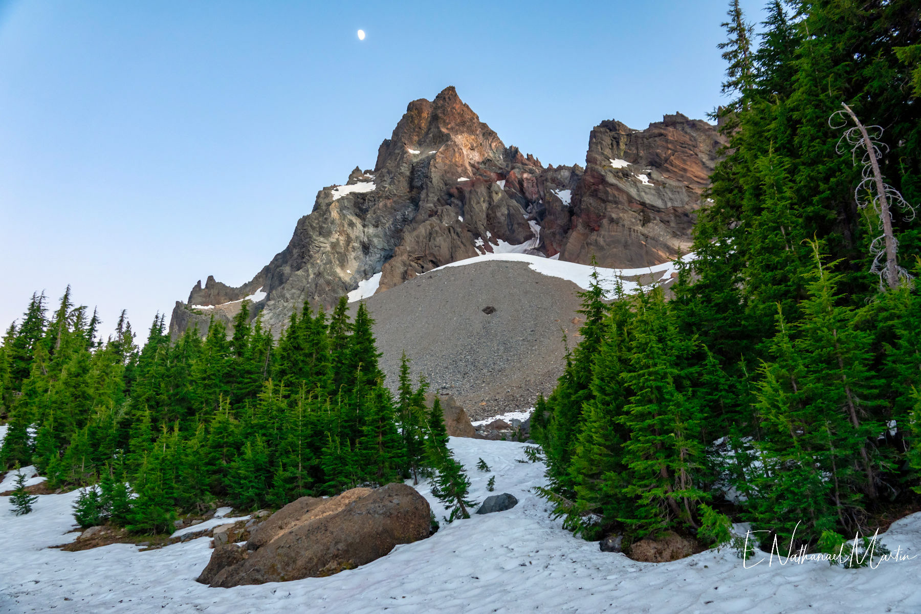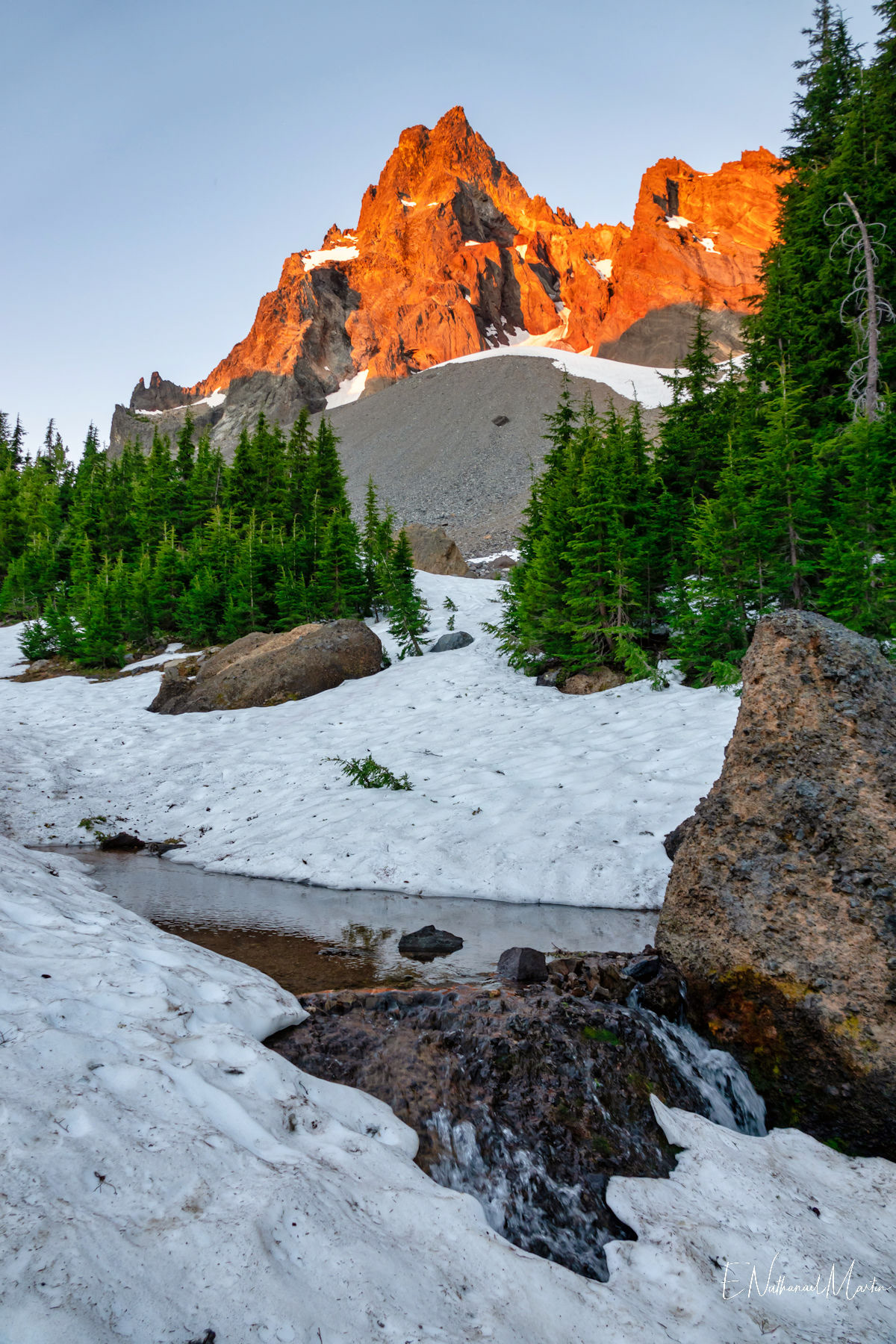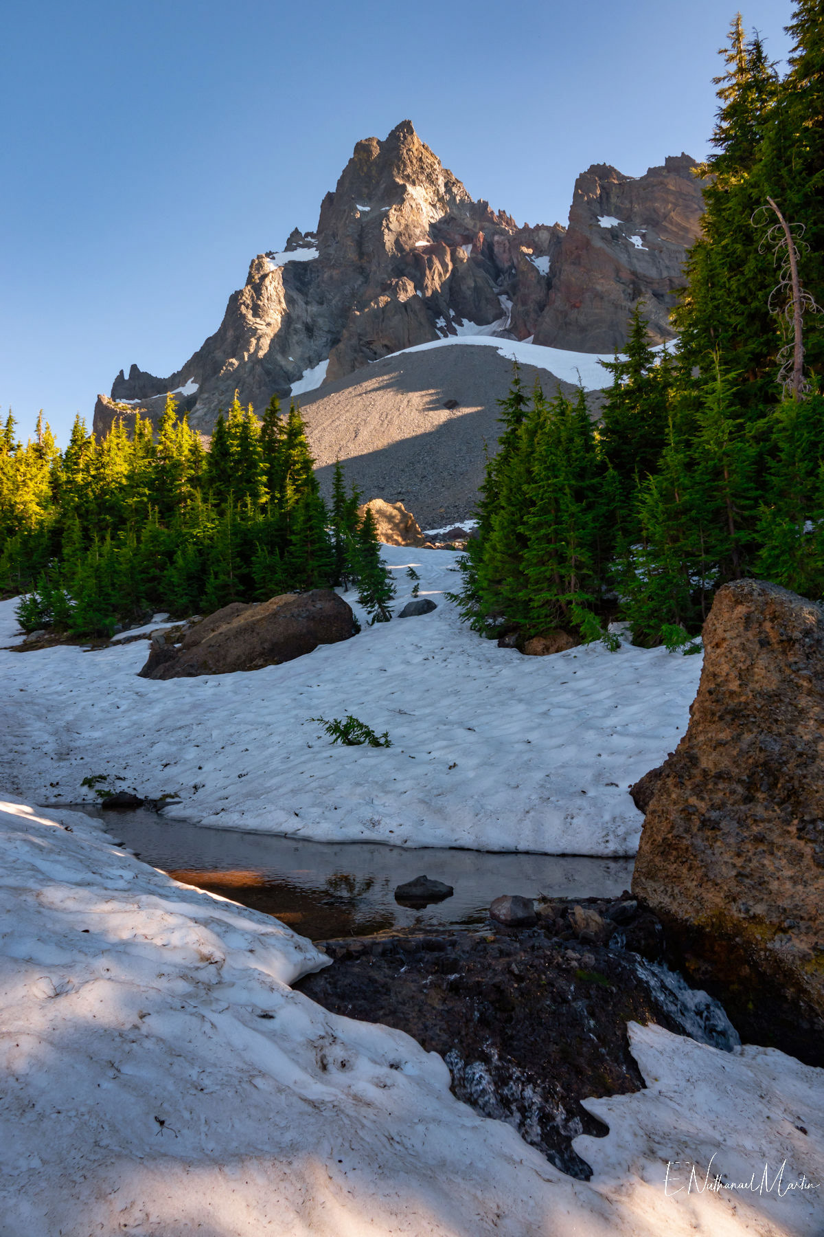 The third weekend in June 2021 I had hoped to visit Steens Mountain in Eastern Oregon...but the road to the summit which is the highest in the state did not reopen in time. While I was concerned it was a bit too early, I decided to try my first overnight backpack trip...up to the relatively small and often overlooked Mt Thielsen. It's just a few miles from Crater Lake and Diamond Lake which both draw big crowds who usually only drive past Thielsen on the highway. But I've recently discovered that some of the most incredibly beautiful gems of Oregon are these small, overlooked mountains. It was a little early -- there was still a lot of snow which made hiking further on the PCT difficult, but I made it up to the meadows right under the mountain which were my goal and it was just as beautiful as I'd expected. It was really fun to be able to sleep near the best view, waking up and catching the stunning alpenglow at 5:30am!