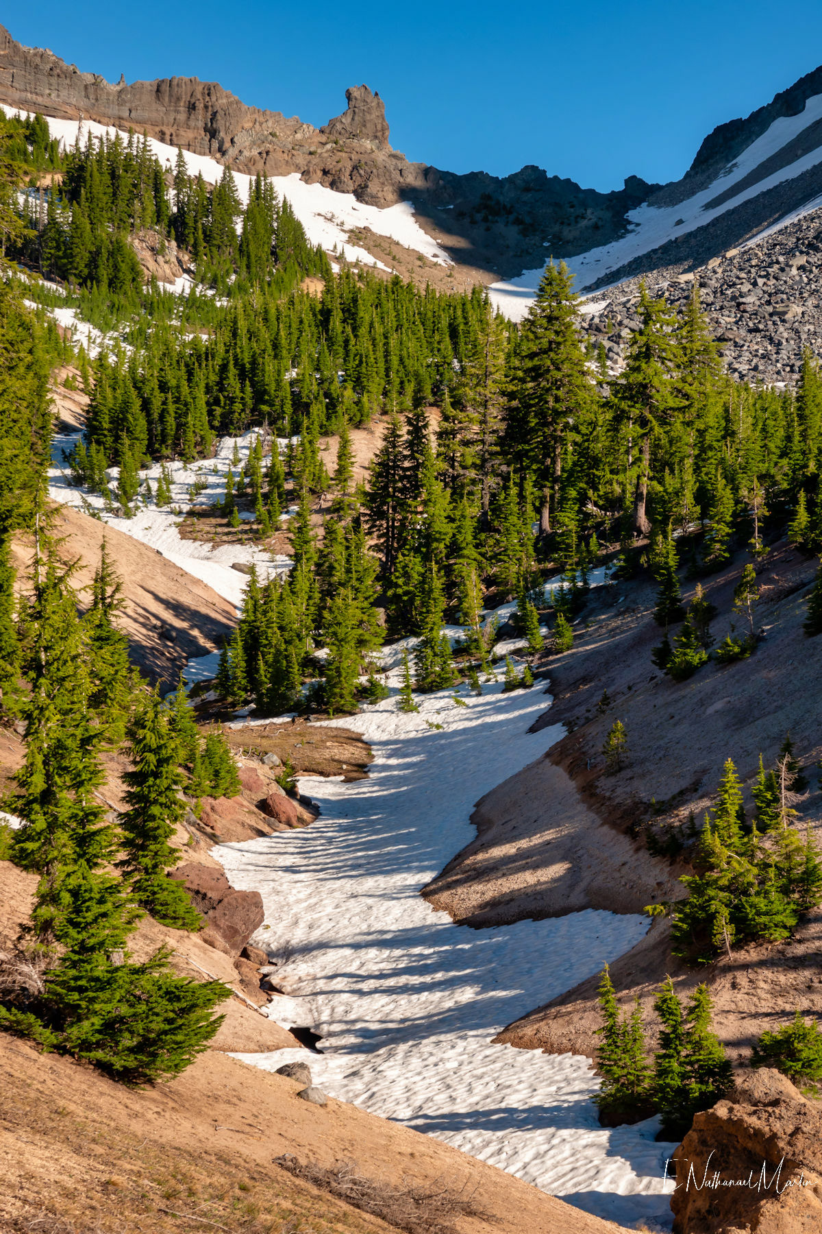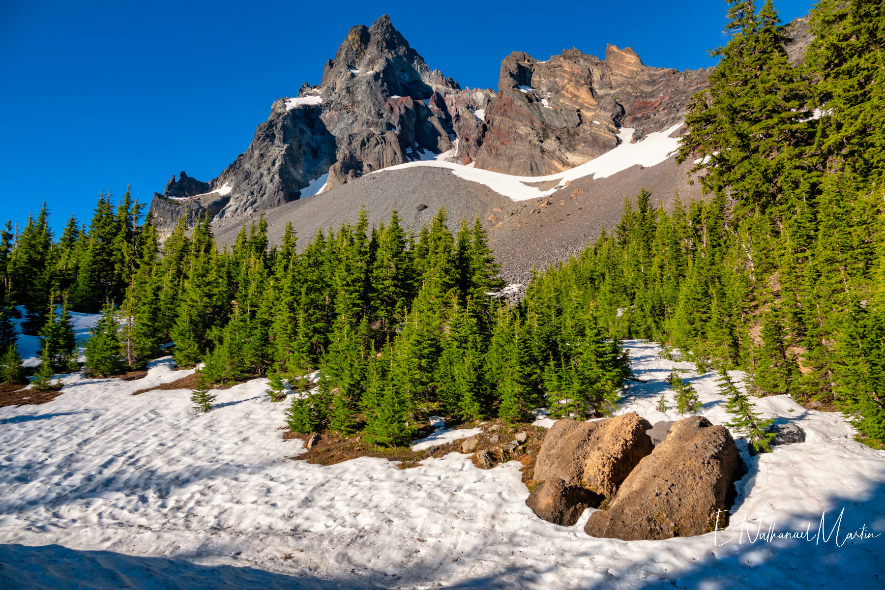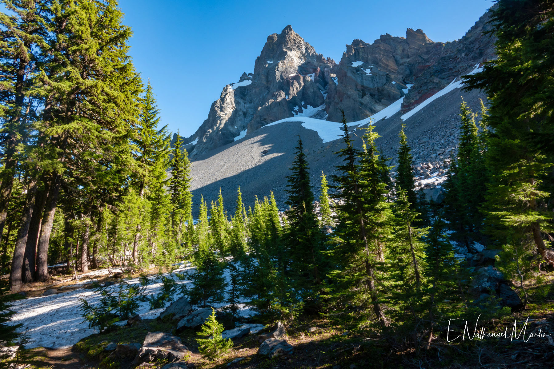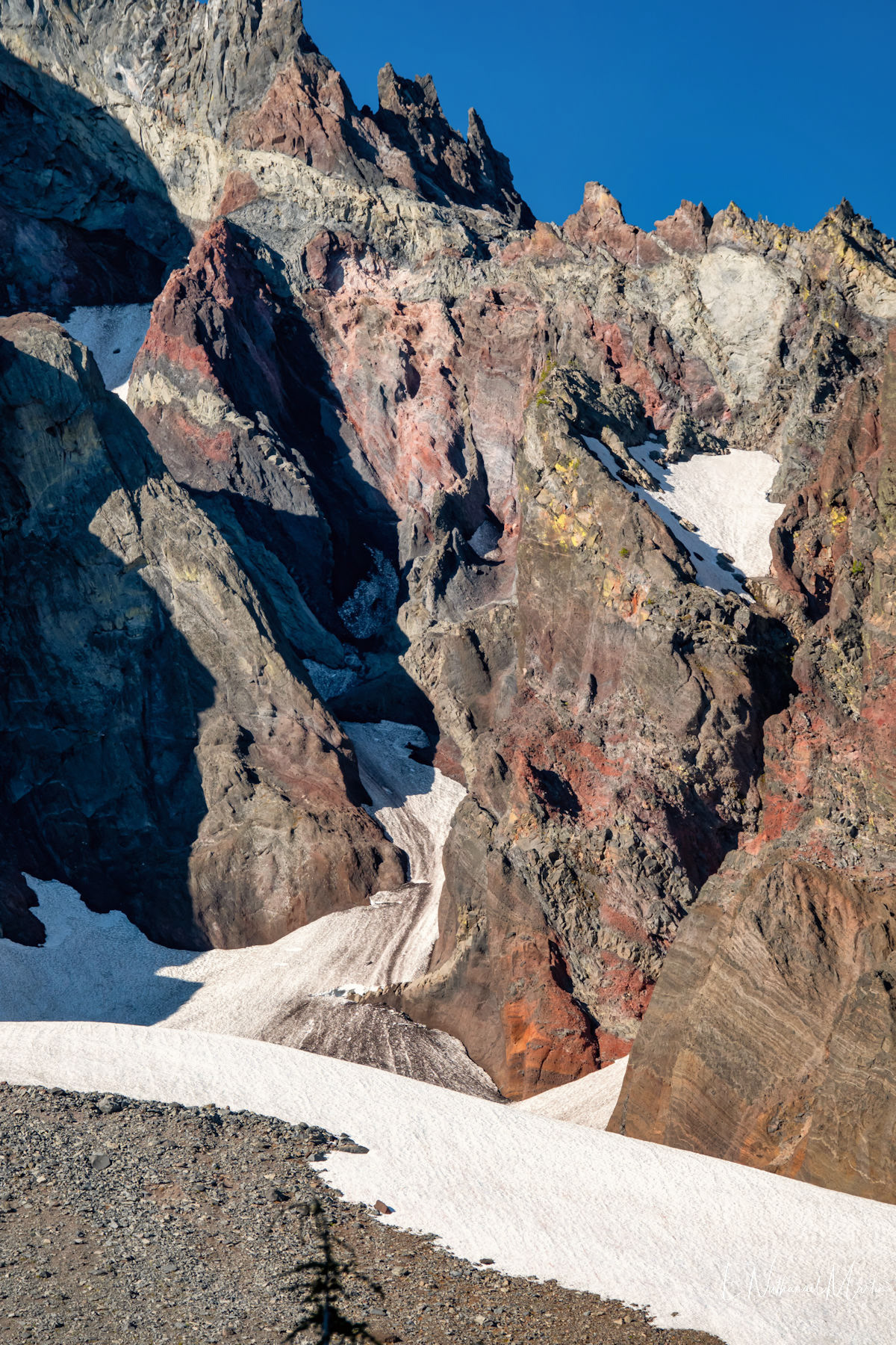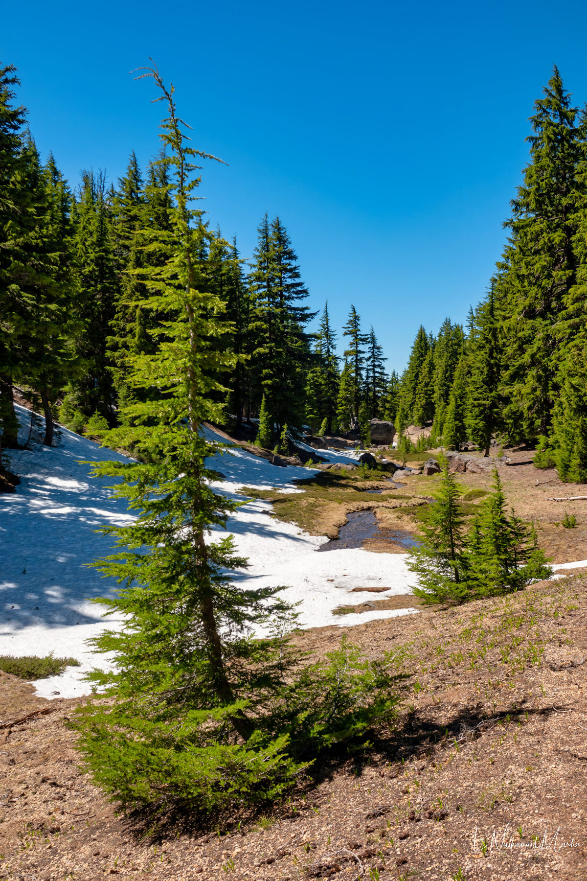The third weekend in June 2021 I had hoped to visit Steens Mountain in Eastern Oregon...but the road to the summit which is the highest in the state did not reopen in time. While I was concerned it was a bit too early, I decided to try my first overnight backpack trip...up to the relatively small and often overlooked Mt Thielsen. It's just a few miles from Crater Lake and Diamond Lake which both draw big crowds who usually only drive past Thielsen on the highway. But I've recently discovered that some of the most incredibly beautiful gems of Oregon are these small, overlooked mountains. It was a little early -- there was still a lot of snow which made hiking further on the PCT difficult, but I made it up to the meadows right under the mountain which were my goal and it was just as beautiful as I'd expected. It was really fun to be able to sleep near the best view, waking up and catching the stunning alpenglow at 5:30am!